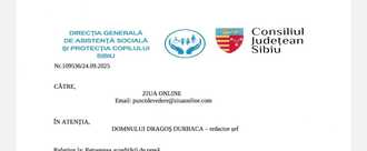 Demiterea directoarei DGASPC Sibiu, Liliana Agarbiceanu, pentru abuz împotriva preseiLibertatea de exprimare – dacă un jurnalist este cenzurat, și dreptul cetățenilor de a fi informați corect este atacat. Transparență și responsabilitate publică – DGASPC administrează bani și servicii publice și oamenii au dreptul să știe ce se întâmplă în instituție. Exemplul periculos – dacă un abuz rămâne nepedepsit, creează precedent ca și alți șefi de instituții să facă la fel. „Nu e vorba doar despre un jurnalist. Este vorba despre dreptul fiecăruia dintre noi de a trăi într-o societate unde presa are voie să întrebe, să cerceteze și să spună adevărul. Dacă azi acceptăm ca un jurnalist să fie redus la tăcere, mâine ni se poate întâmpla oricăruia dintre noi.” Jurnalist Dragoș Durbaca5 din 100 SemnăturiInițiat de Dragos Durbaca