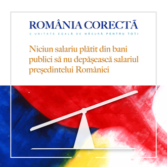Niciun salariu plătit din bani publici să nu depășească salariul președintelui României“„Niciun salariu plătit din bani publici să nu depășească salariul președintelui României”” Poporul Român trebuie sã fie solidar semnând această petiție pentru transparență, echitate și respect față de contribuabili. Pentru o Românie în care puterea nu se măsoară în bani, ci în responsabilitate. • În prezent, guvernatorul BNR, președintele ASF și directori de companii de stat câștigă peste 90.000 lei/lună, adică aproape dublu față de președintele României. • În nicio democrație matură nu este normal ca subordonații sistemului să câștige mai mult decât vârful său instituțional. • O asemenea lege ar introduce un principiu moral de ierarhie publică și ar reduce risipa bugetară din instituțiile autonome. • Măsura ar încuraja meritocrația, modestia și responsabilitatea în administrația publică. #EchitatePublică #LegeDeBunSimț #Transparență #RomâniaCorectă #SalariuPlafonat #RespectPentruBaniPublici #FărăExcepții84 din 100 SemnăturiInițiat de Aurelian Epuraș