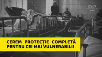 Cerem protecție completă pentru cei mai vulnerabili! #covid19RO: Nu ne permitem ca în astfel de centre să apară focare ca cele din Spania sau Statul Washington, unde rezidenții au fost decimați din cauza slabelor măsuri de protecție și a lipsei de reacție a autorităților. Deja avem un caz foarte grav la Spitalul Obregia și acesta este abia începutul! Nu îi sacrificați pe cei mai vulnerabili și pe cei care le poartă de grijă zi de zi! _______________________ ENG: In these facilities, we cannot afford any COVID-19 outbreaks such as those in Spain or Washington State, where residents have been decimated because of insufficient protection measures and the authorities' lack of reaction. A very serious case has already occurred at Obregia Psychiatric Hospital and this is just the beginning! Don't sacrifice the most vulnerable and the people who take care of them every day!1.675 din 2.000 SemnăturiInițiat de Centrul de Resurse Juridice