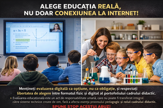 Pentru o educație umană: portofoliu și evaluare digitală complementare, nu obligatorii📢 Noi, semnatarii acestei petiții – cadre didactice, părinți și cetățeni preocupați de viitorul educației – solicităm analizarea urgentă și revizuirea proiectului de „Metodologie-cadru privind elaborarea și gestionarea portofoliului profesional al cadrului didactic”, publicat în data de 16.03.2026. 1. Termenul insuficient pentru consultare publică • Termenul insuficient pentru consultare publică și încălcarea spiritului Legii nr. 52/2003 • Deși proiectul respectă formal prevederea minimă de 10 zile calendaristice, , în mod real, aproximativ 6 zile lucrătoare pentru transmiterea propunerilor, conform art. 7 alin. (4) din Legea nr. 52/2003, considerăm că aplicarea acestui termen în forma actuală este abuzivă și contrară scopului legii. • Conform art. 7 alin. (2) din aceeași lege, proiectele de acte normative trebuie aduse la cunoștința publicului cu cel puțin 30 de zile înainte de adoptare, pentru a asigura o consultare reală și efectivă. Solicităm extinderea termenului la minimum 30 de zile, pentru a permite informarea corectă a cadrelor didactice și a părinților, organizarea de ședințe și formularea unor opinii fundamentate. În cazul de față: • acest interval este insuficient pentru analiză, consultare internă în unitățile de învățământ și obținerea punctelor de vedere din partea părinților; • nu a existat o informare activă a actorilor direct implicați (cadre didactice, părinți). În aceste condiții, consultarea publică devine una formală, nu reală, ceea ce contravine principiilor transparenței decizionale. Solicităm: • respectarea unui termen efectiv de minimum 30 de zile pentru consultare; • reluarea procedurii de consultare publică în condiții de transparență reală. 2. Lipsa informării transparente Proiectul nu a fost suficient mediatizat la nivelul unităților de învățământ, iar părinții nu au fost informați în mod direct despre implicațiile acestuia și nici profesorii, educatorii. Solicităm implementarea unor mecanisme clare de informare și consultare a tuturor persoalelor care vor fi afectate de aceste prevederi. 3. Dreptul de a utiliza format fizic pentru portofoliu Articolul 11 permite unităților de învățământ să opteze exclusiv pentru format digital, ceea ce poate restrânge dreptul cadrelor didactice de a depune documente în format fizic. Propunem modificarea formulării astfel: „Portofoliul profesional se păstrează în unitatea de învățământ în format fizic (letric) și/sau format digital”. Această modificare ar garanta libertatea de alegere și acces egal pentru toți. 4. Introducerea evaluării digitale a elevilor Anexa nr. 1 prevede utilizarea instrumentelor de evaluare digitale (inițială, formativă și sumativă). Considerăm că: • evaluarea elevilor trebuie să rămână un proces realizat în mod direct de către cadrul didactic; • utilizarea exclusivă a platformelor digitale în evaluare poate afecta relația umană profesor-elev, dezvoltarea armonioasă a copiilor și rolul profesorului în procesul evaluării; • nu există suficiente garanții privind protecția datelor și utilizarea ulterioară a informațiilor colectate; • există riscuri privind stabilirea corectă a progresului real al copilului. Solicităm ca evaluarea digitală să NU fie impusă ca formă obligatorie, ci să rămână opțională și complementară. 5. Necesitatea acordului părinților Considerăm esențial ca orice formă de evaluare digitală a elevilor să fie realizată doar cu acordul informat al părinților. Solicităm introducerea obligativității consultării și acordului explicit al acestora la fiecare testare. 6. Impactul asupra sistemului educațional Digitalizarea excesivă, în special în etapa evaluării, poate avea consecințe pe termen lung asupra: • rolului cadrului didactic; • stabilității locurilor de muncă din sistem; • modului în care sunt orientate competențele elevilor. De asemenea, conectarea generalizată a copiilor la platforme digitale și utilizarea predominantă a mediului online în procesul educațional pot conduce, în timp, la diminuarea rolului școlii și grădiniței ca spații fizice esențiale pentru formare. Considerăm că: • relațiile interumane directe dintre elevi și profesori sunt fundamentale pentru dezvoltarea emoțională și socială a copiilor; • învățarea prin experiență directă, în mediul real și natural, este esențială pentru înțelegerea lumii; • educația nu poate fi redusă la interacțiuni virtuale fără a afecta calitatea formării. Copiii au nevoie de interacțiune directă, de experiențe reale și de un mediu educațional fizic, în care să își dezvolte abilitățile cognitive, sociale și emoționale. Solicităm o analiză de impact reală și transparentă înainte de implementarea unor astfel de măsuri, astfel încât digitalizarea să rămână un instrument complementar, nu un substitut al educației tradiționale. Introducerea evaluării digitale și a standardizării excesive a activității didactice poate conduce, în timp, la modificarea rolului profesorului. Există riscul apariției unui model de „profesor multifuncțional” (de tip „mozaic”), care să preia atribuții din mai multe arii curriculare, pe fondul digitalizării evaluării și al centralizării datelor. Acest model poate avea consecințe precum: • reducerea numărului de posturi didactice; • diminuarea rolului profesorului în evaluarea directă a elevului; • uniformizarea procesului educațional în detrimentul relației umane profesor–elev. Solicităm analizarea atentă a acestor riscuri înainte de implementarea unor măsuri ireversibile. Concluzie: Modernizarea educației trebuie realizată echilibrat, fără a elimina componenta umană esențială a procesului 