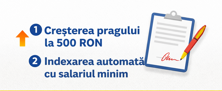 Hai să cerem împreună: 1️⃣ Creșterea pragului la 500 RON. 2️⃣ Indexarea automată cu salariul minim.
