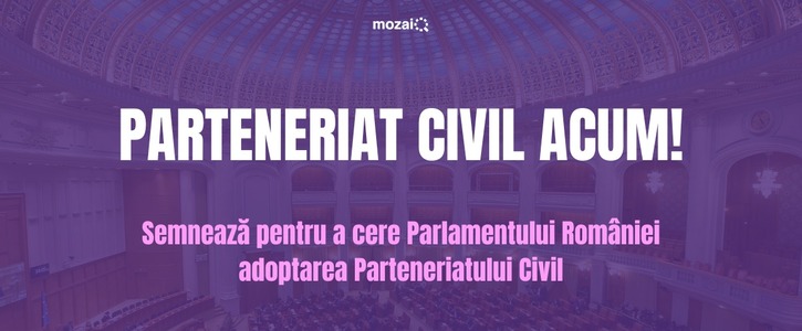 Asociația MozaiQ, împreună cu peste 65 de organizații ale societății civile și zeci de personalități publice și aliați solicită Parlamentului României adoptarea de urgență a propunerii legislative Pl-x 152/2019 sau Pl-x 153/2019 referitor la parteneriatul civil, care oferă un cadru de recunoaștere legală pentru toate cuplurile necăsătorite din România.
