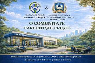 Floresti are nevoie de o bibliotecă publicăMii de părinți cer înființarea unei biblioteci publice Floreștiul are nevoie de o bibliotecă publică – solicităm includerea urgentă a proiectului în bugetul local 2026 Asociația de Părinți alături de Consiliul Reprezentativ al Părinților „Dumitru Tăutan” Florești a transmis Consiliului Local și Primăriei Comunei Florești o solicitare oficială privind includerea, în bugetul local pentru anul 2026, a demersurilor necesare înființării unei biblioteci publice moderne, cu acces gratuit pentru toți locuitorii. Florești este astăzi cea mai mare comună din România, cu o populație de ordinul zecilor de mii de locuitori și cu un număr în continuă creștere de copii, elevi și tineri. Cu toate acestea, comunitatea nu dispune în prezent de un serviciu public esențial – o bibliotecă publică funcțională. Asociația de Părinți alături de Consiliul Reprezentativ al Părinților „Dumitru Tăutan” Florești consideră că această lipsă reprezintă un deficit major de infrastructură educațională și culturală. Absența unui spațiu dedicat lecturii, studiului individual și activităților educaționale limitează accesul la educație, cultură și informare și plasează Floreștiul sub standardele minime ale unei comunități moderne și dezvoltate. În contextul în care unitățile de învățământ din localitate funcționează la capacitate maximă, iar numeroase familii tinere nu dispun acasă de condiții adecvate pentru studiu, o bibliotecă publică ar reprezenta nu doar un spațiu de lectură, ci un veritabil centru educațional și comunitar, care să includă: • săli de lectură și studiu, • zone dedicate copiilor și adolescenților, • activități educative și culturale, ateliere și cluburi de lectură, • acces la resurse digitale și informaționale. Un astfel de proiect ar contribui direct la creșterea performanței școlare, la reducerea inegalităților de acces la educație și la consolidarea vieții culturale locale. Prin prezenta, Asociația de Părinți alături de Consiliul Reprezentativ al Părinților „Dumitru Tăutan” Florești solicită autorităților locale alocarea resurselor financiare necesare și inițierea de urgență a procedurilor administrative pentru demararea acestui obiectiv de interes public, prin includerea proiectului în bugetul local pe anul 2026. Nicoleta Hulpuș – președinte Asociația de Părinți "Dumitru Tăuțan"408 din 500 SemnăturiInițiat de Asociația de Părinți "DUMITRU TĂUȚAN "